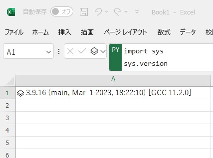 なお、Python in Excelで利用できるPythonのバージョンは、本記事執筆時点でPython 3.9.16です。sys.version