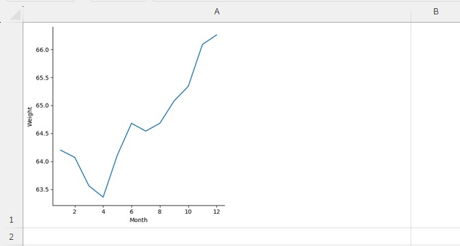 これでグラフが表示されるようになりました。A1セルの幅を広げると、折れ線グラフを確認できます。