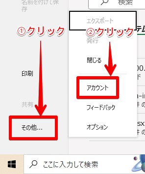 [その他...]-[アカウント]をクリック¶