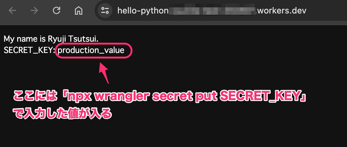 Cloudflare Workersでも環境変数を扱うことができます。 前述のサンプルコードを使って、環境変数の値を取得してみましょう。