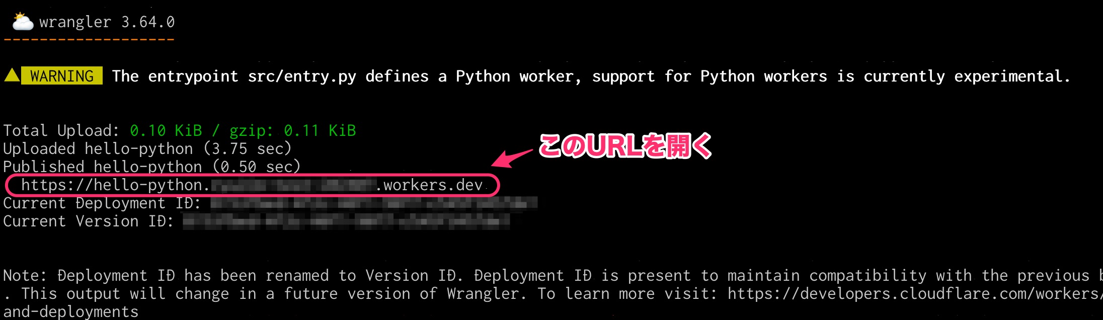 上記コマンドの実行後、npx wrangler@latest deploy
